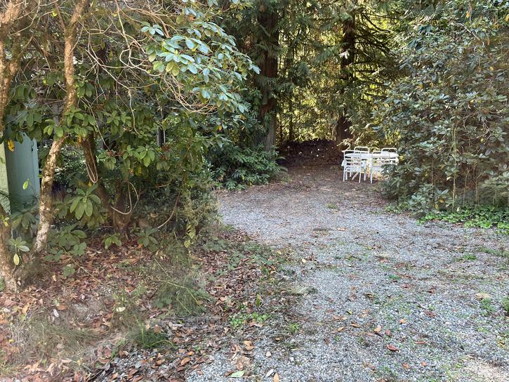 The back area of this site is very private with lots of greenery and large cedars.